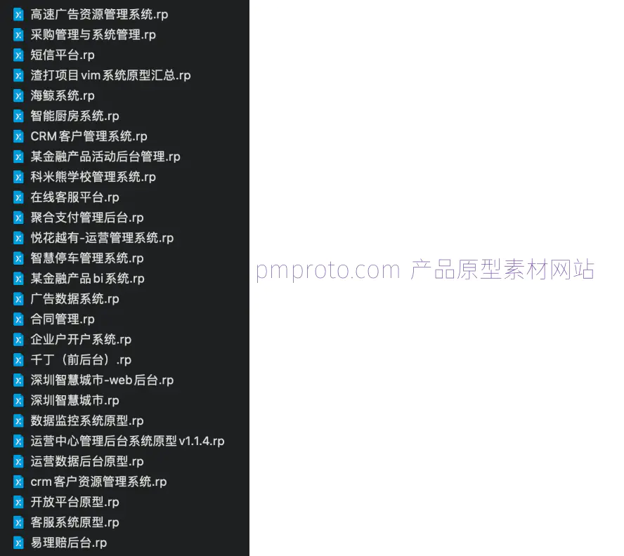 27套后台管理系统的原型设计,同时附带了Axure RP源文件的下载链接。这些原型覆盖了采购、支付、金融、CRM等多个领域,为产品经理和设计师们提供了快速搭建后台管理系统的工具和参考。
